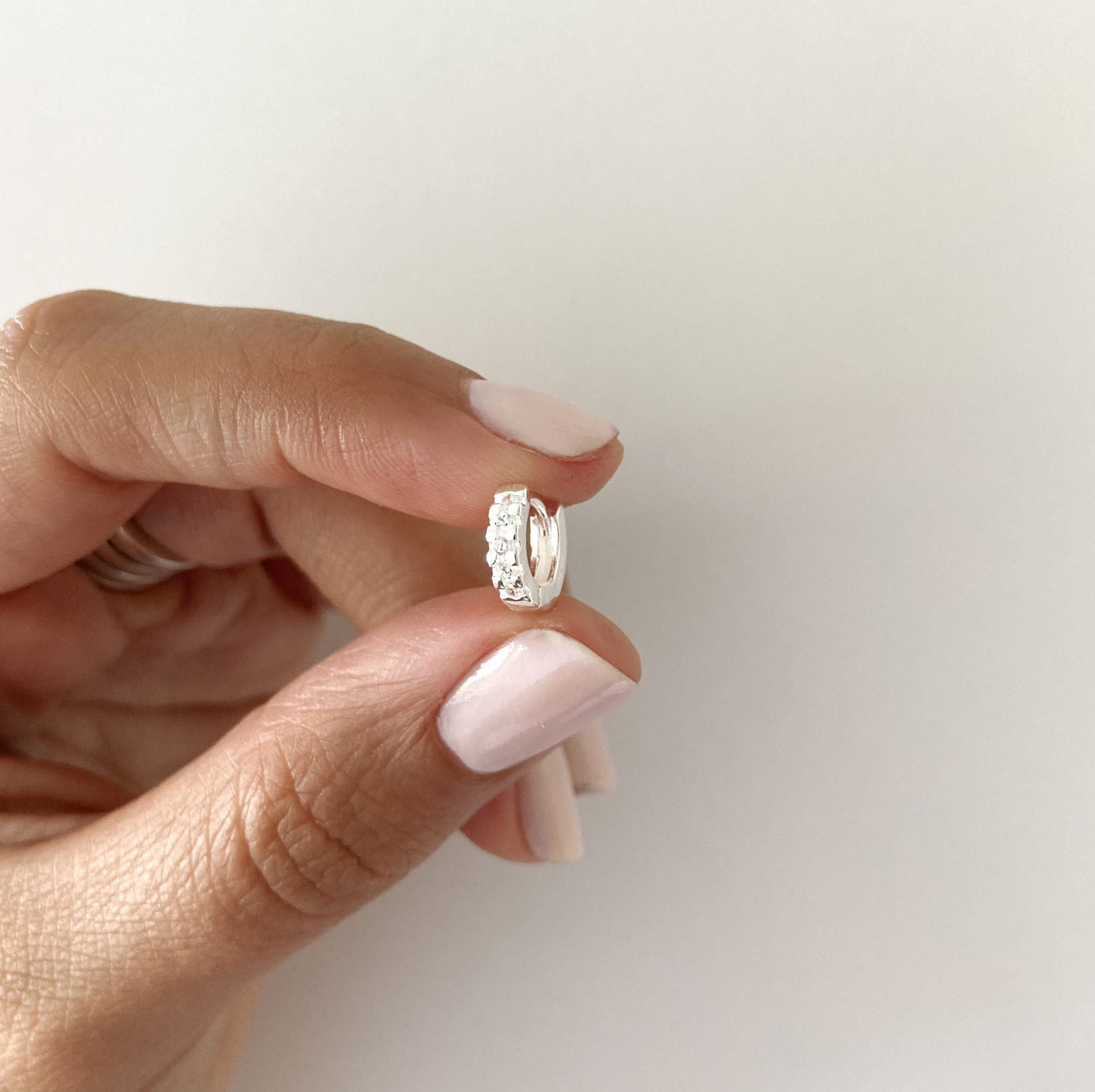 Arito mini Huggie con cubic, mide 1 cm de diámetro exterior.