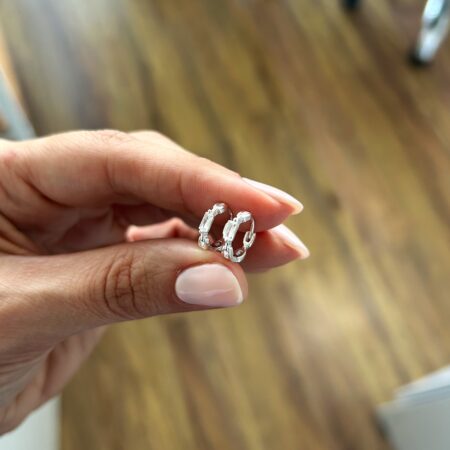 Aros cierre huggie con tres circonias rectangulares.
