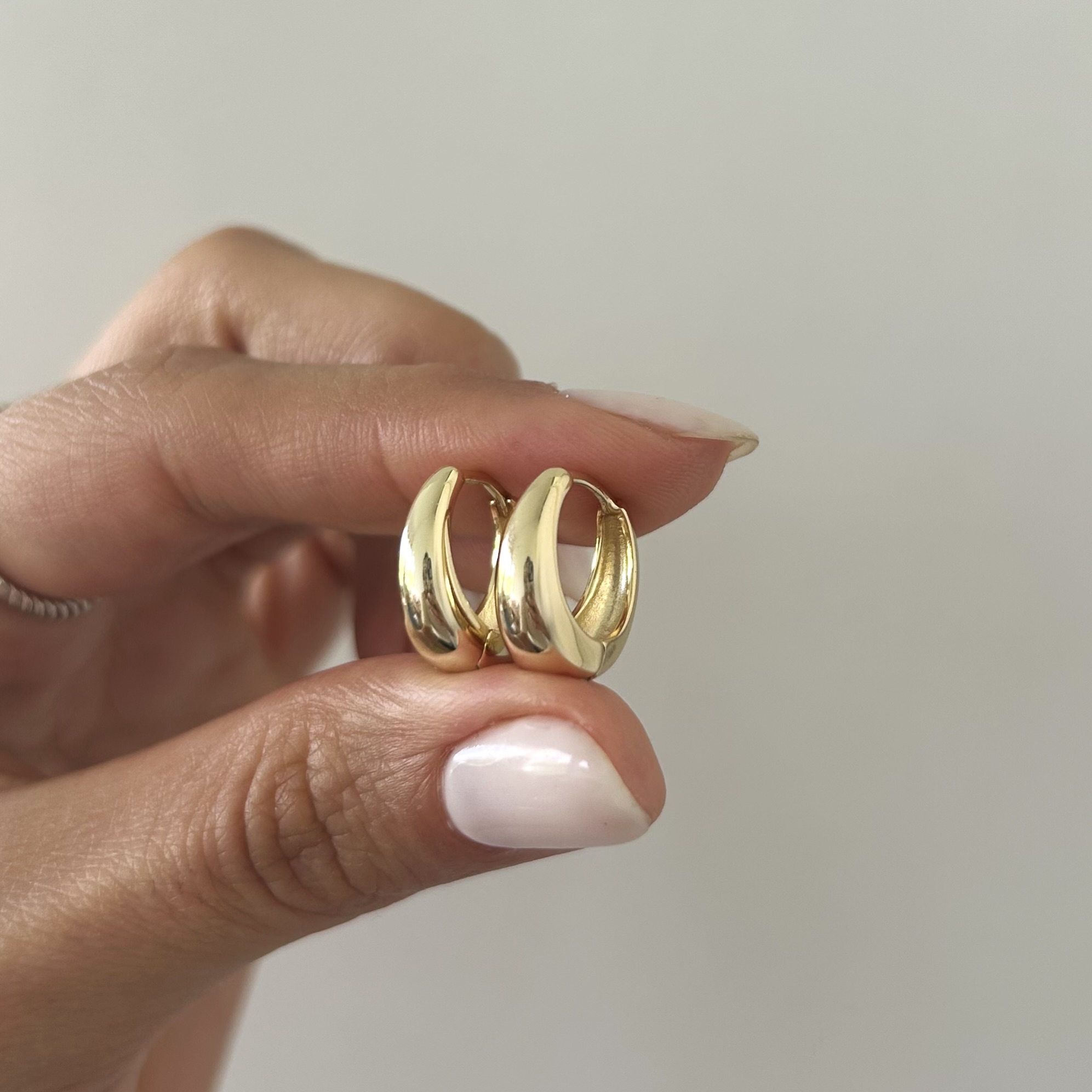Aros con cierre huggie gruesitos, miden 15 mm de diámetro exterior.