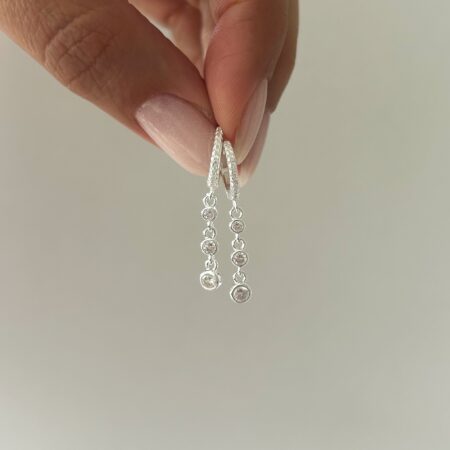 Aros con cubic, cierre huggie, con 3 circonias colgantes. Mide 1.2 cm de diámetro exterior.