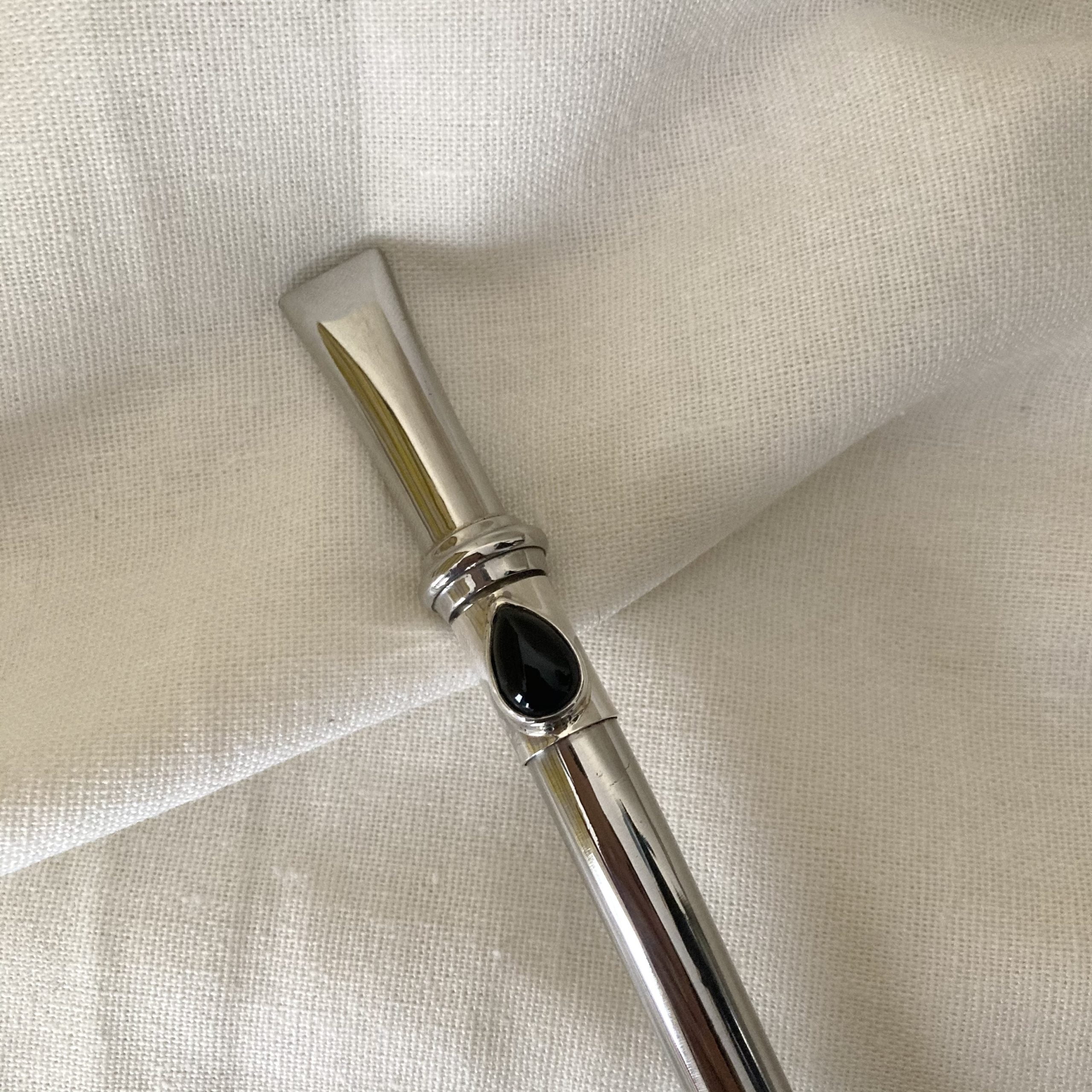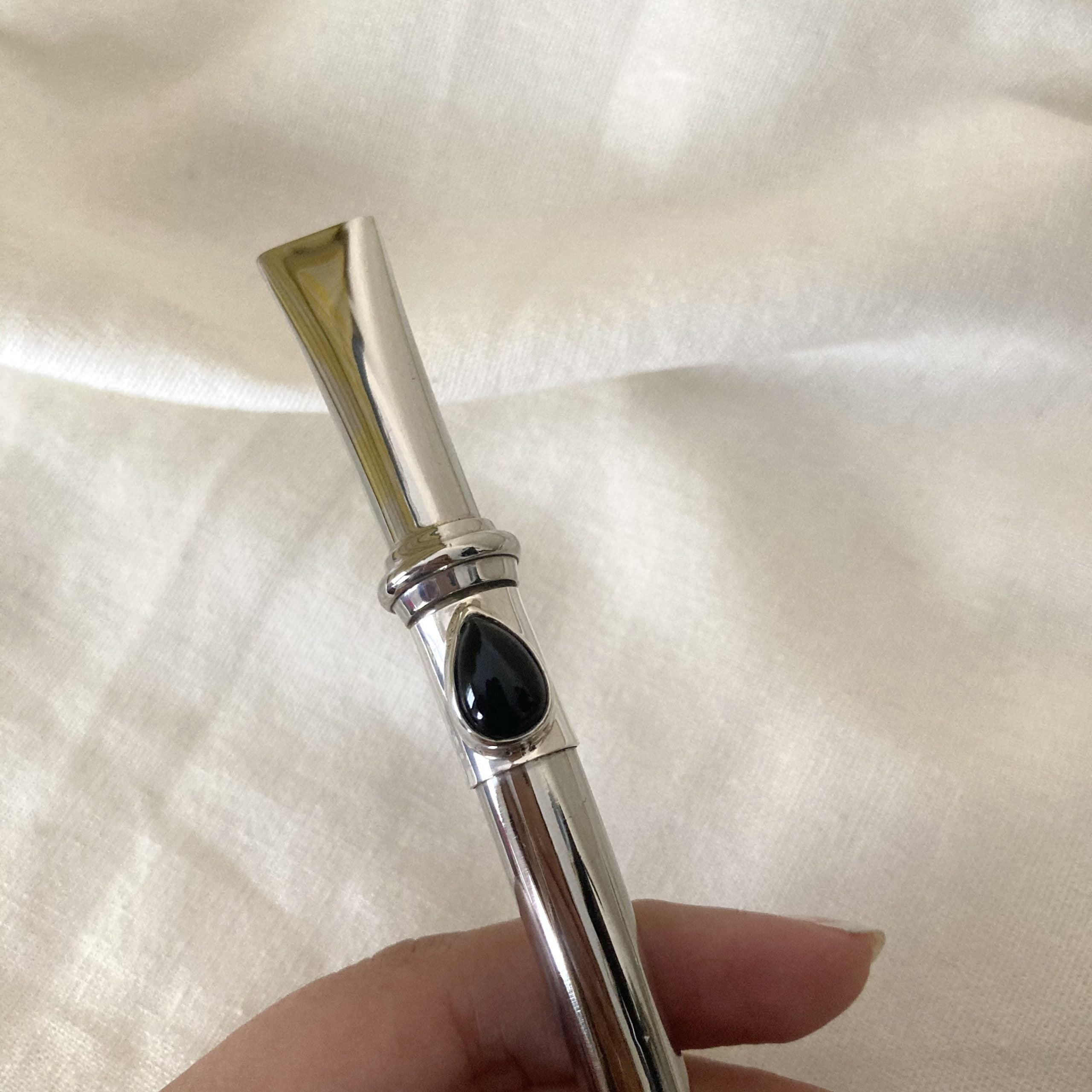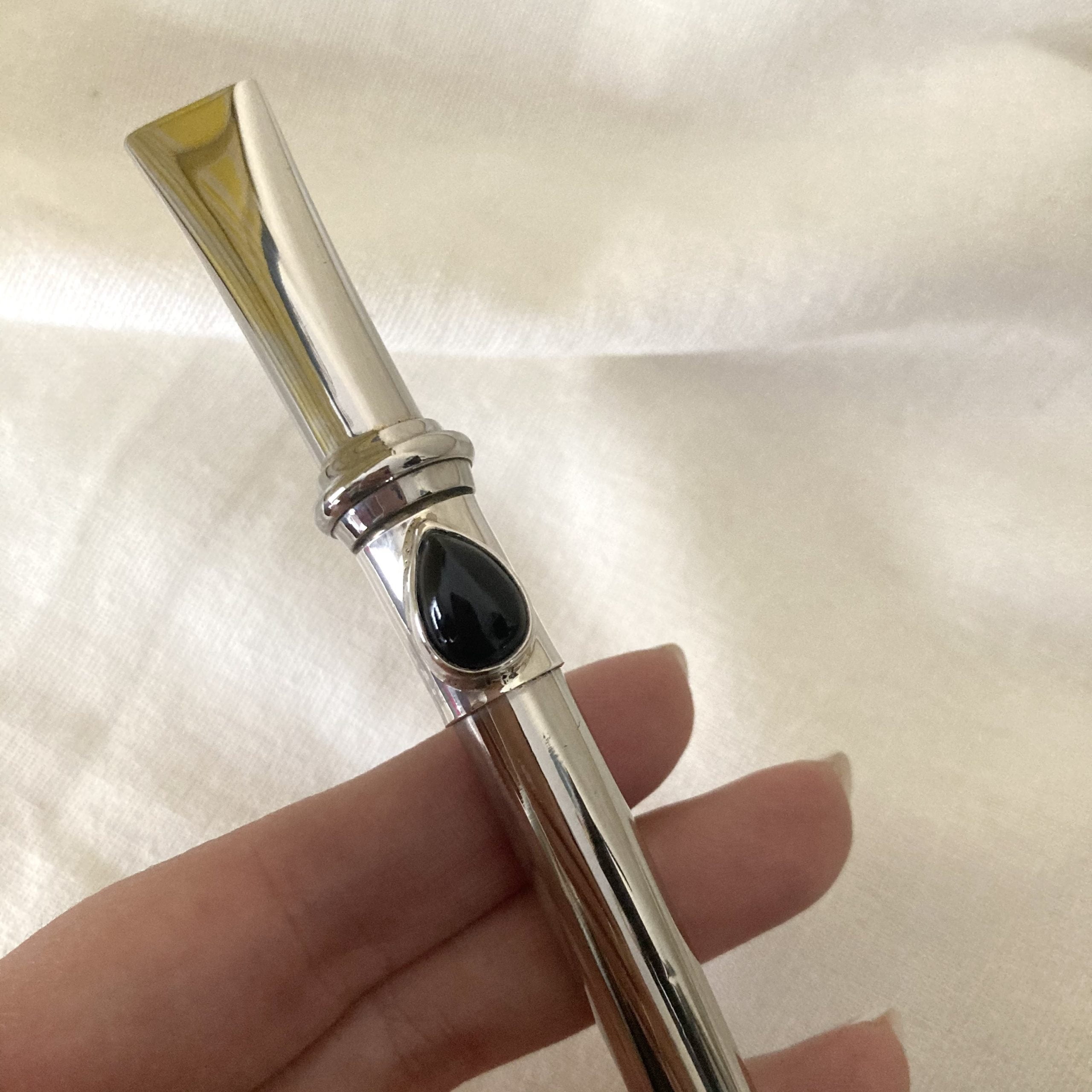 Bombilla de alpaca con piedra onix engarzada en plata 925