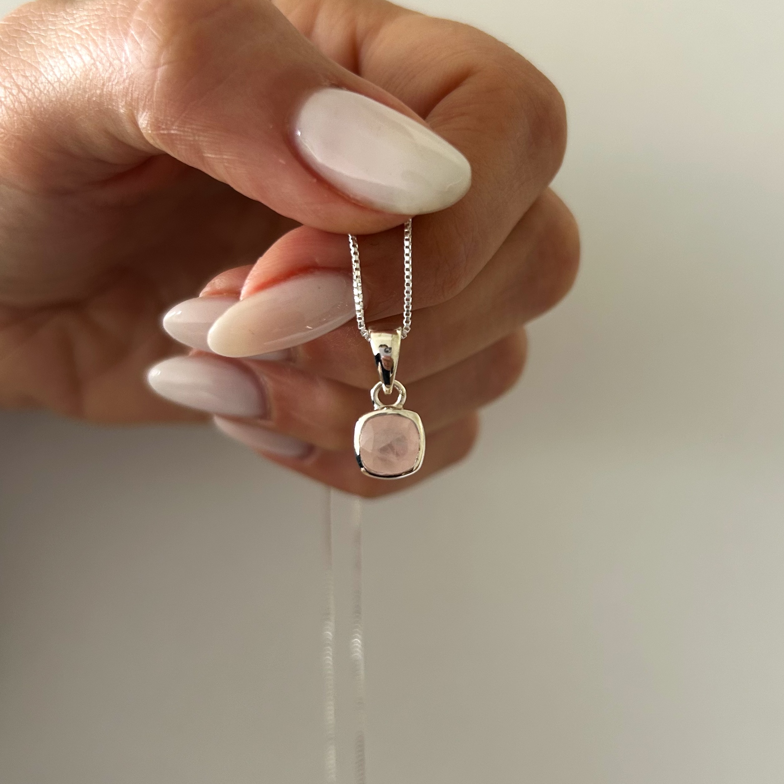 • Colgante dije cuadrado cuarzo rosa plata 925