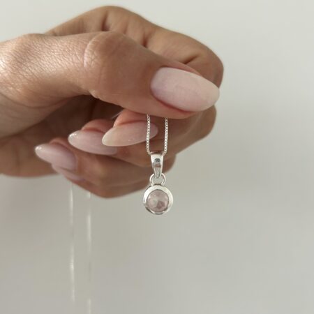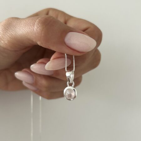 Colgante dije circular y piedra cuarzo rosa natural.