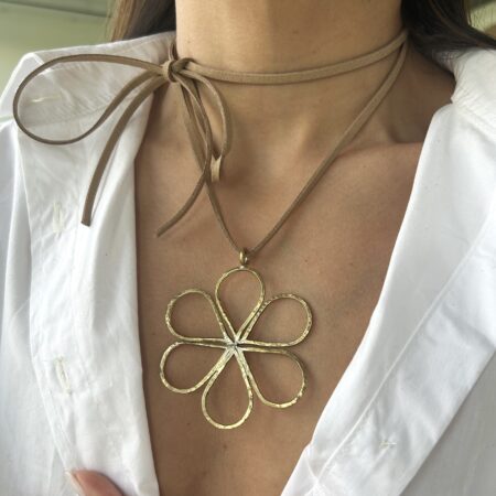 • Colgante dije flor dorado y tiento