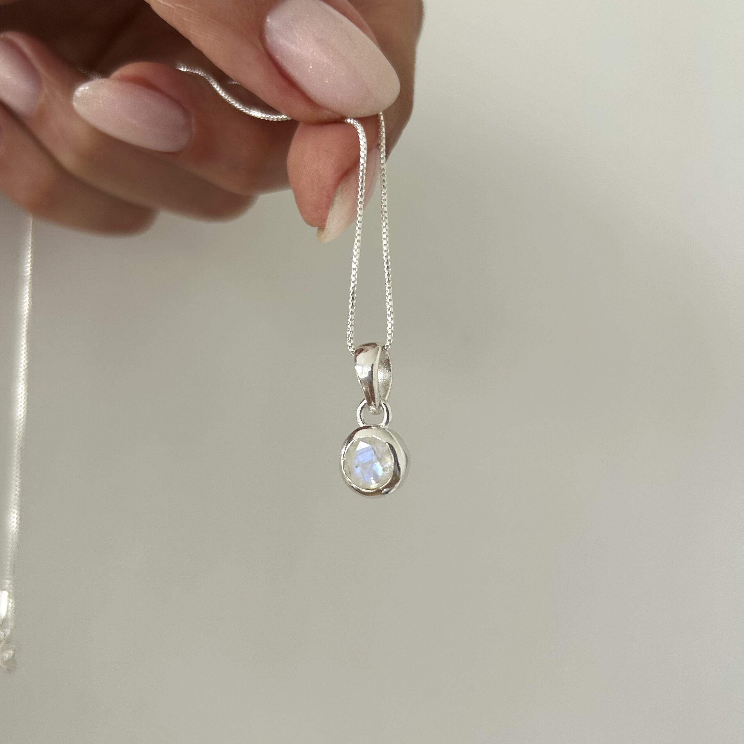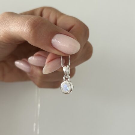 Colgante dije circular y piedra de la luna natural.