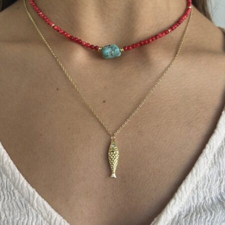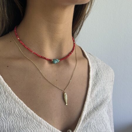 Esta combinado con el colgante de pez cubic en baño de oro, (el precio es solo por el colgante de nácar rojo)