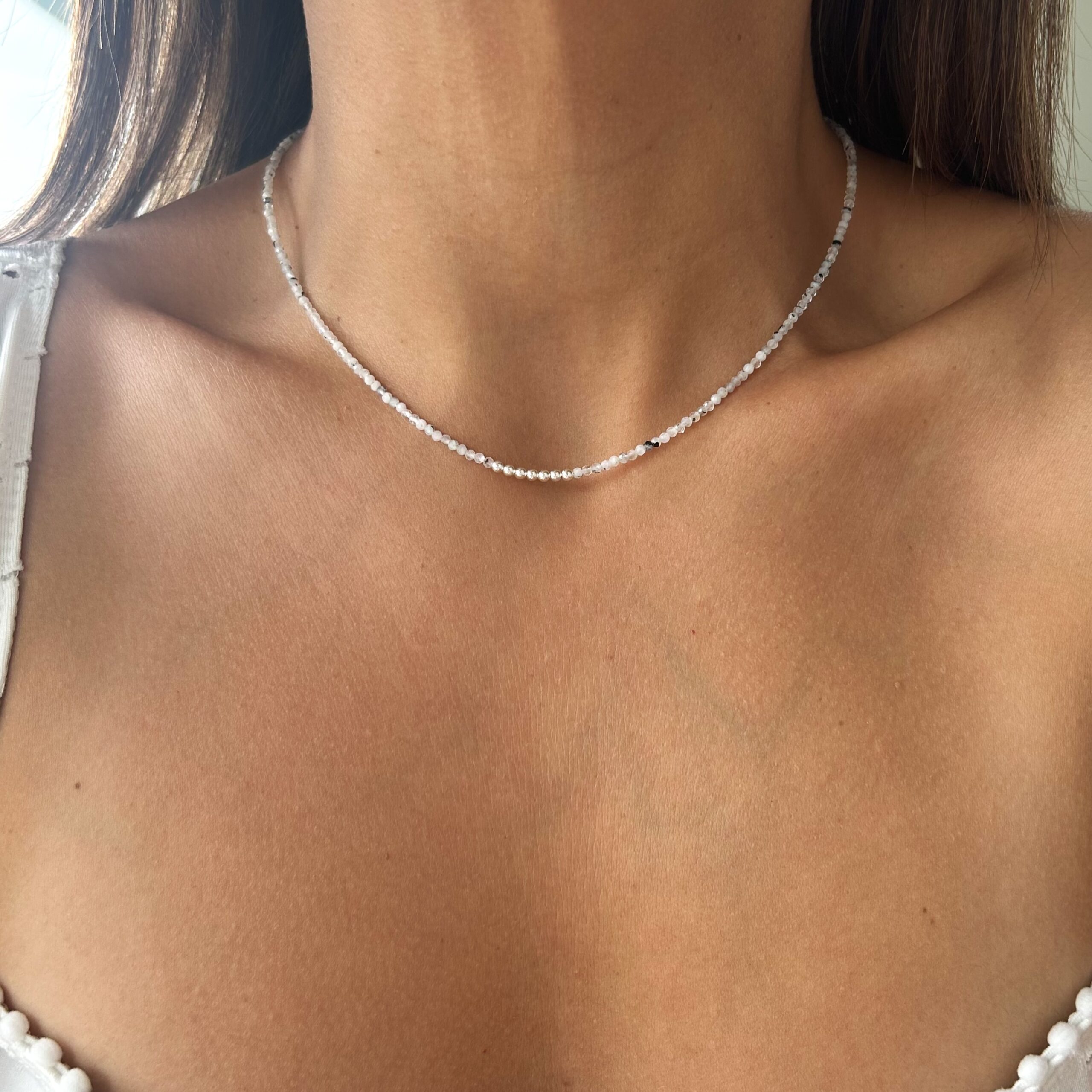 Colgante con piedra labradorita natural + bolitas, cierre y terminales de plata 925.