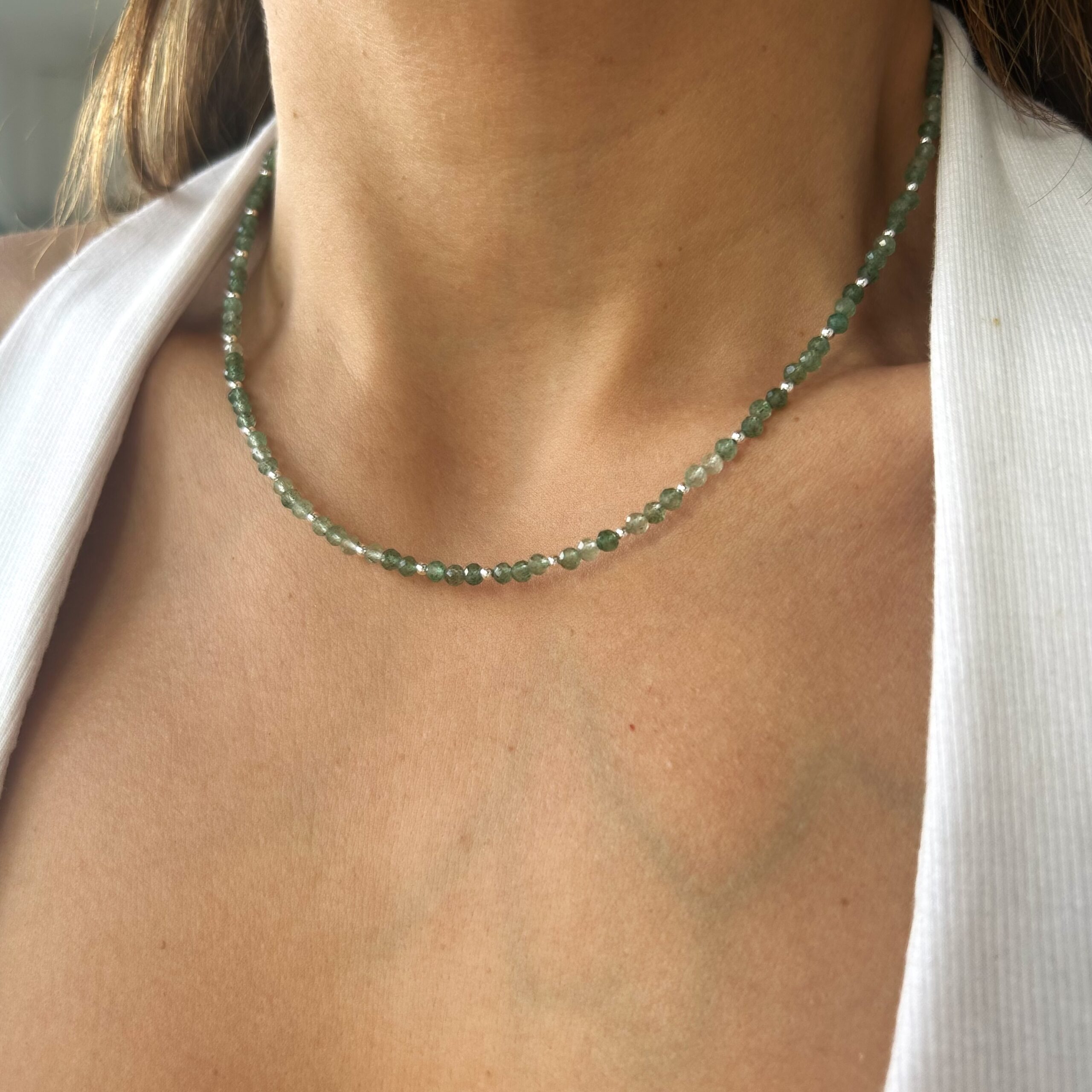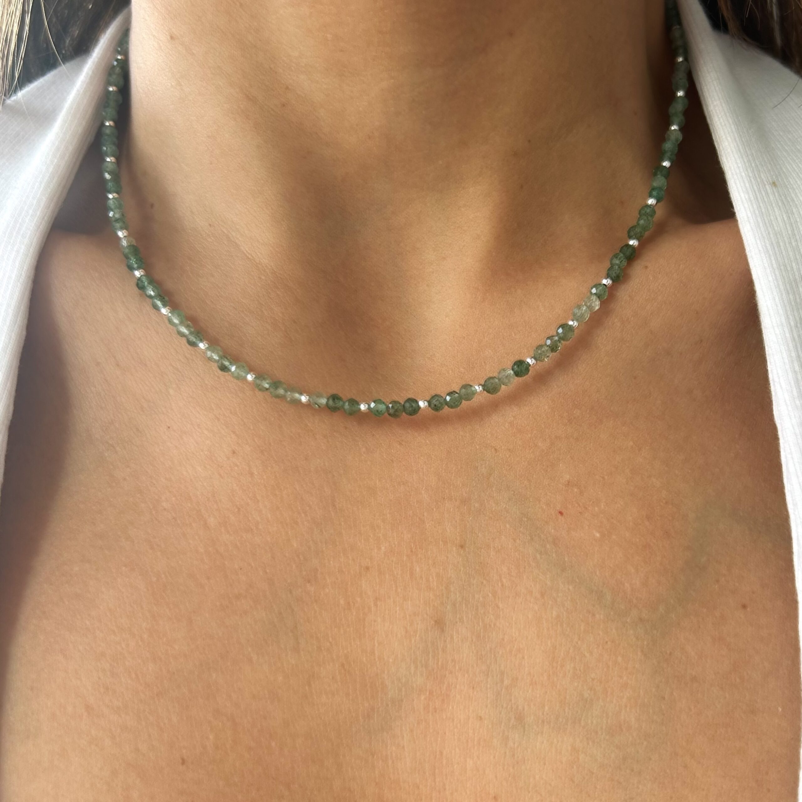 Colgante con bolitas de piedra natural jade y plata 925.