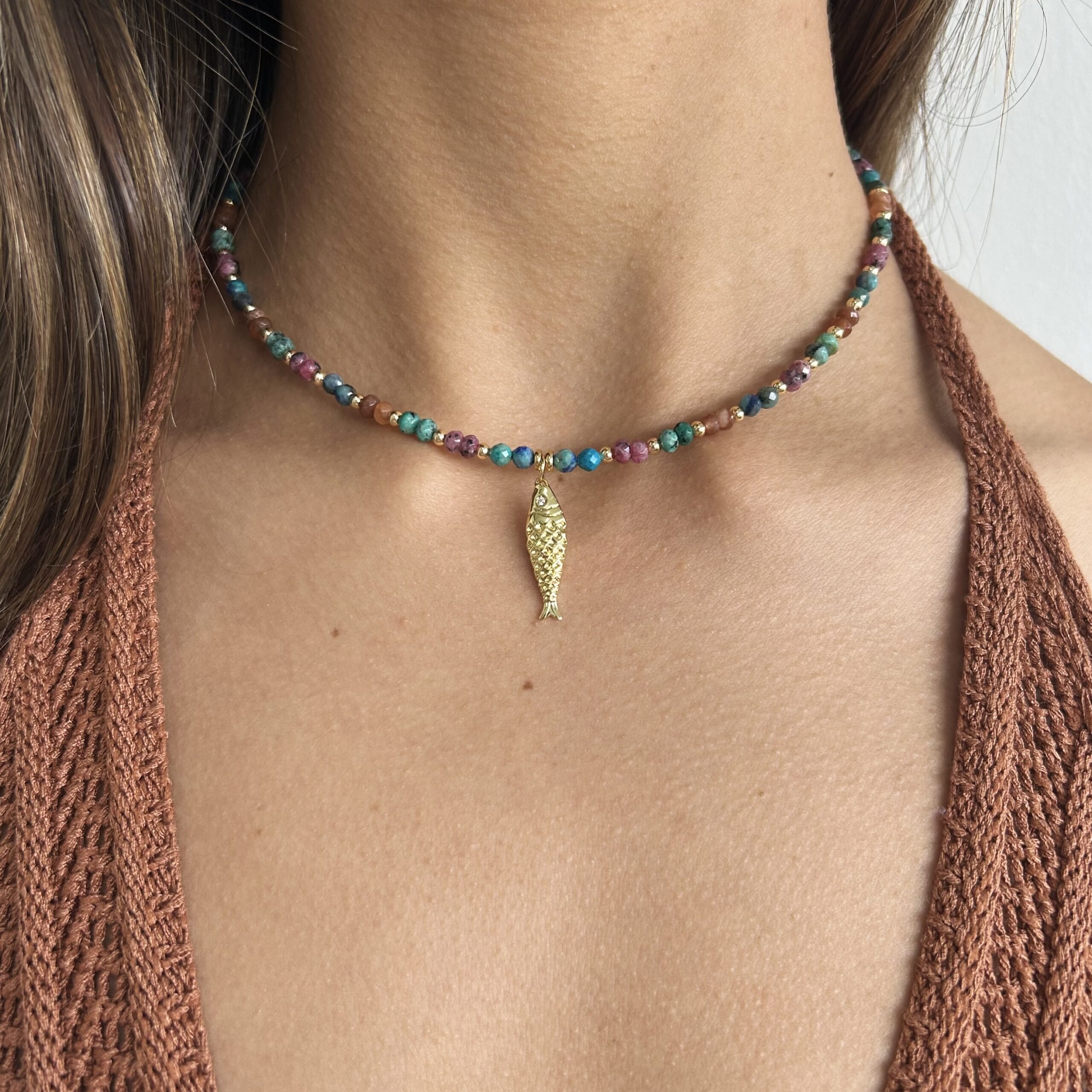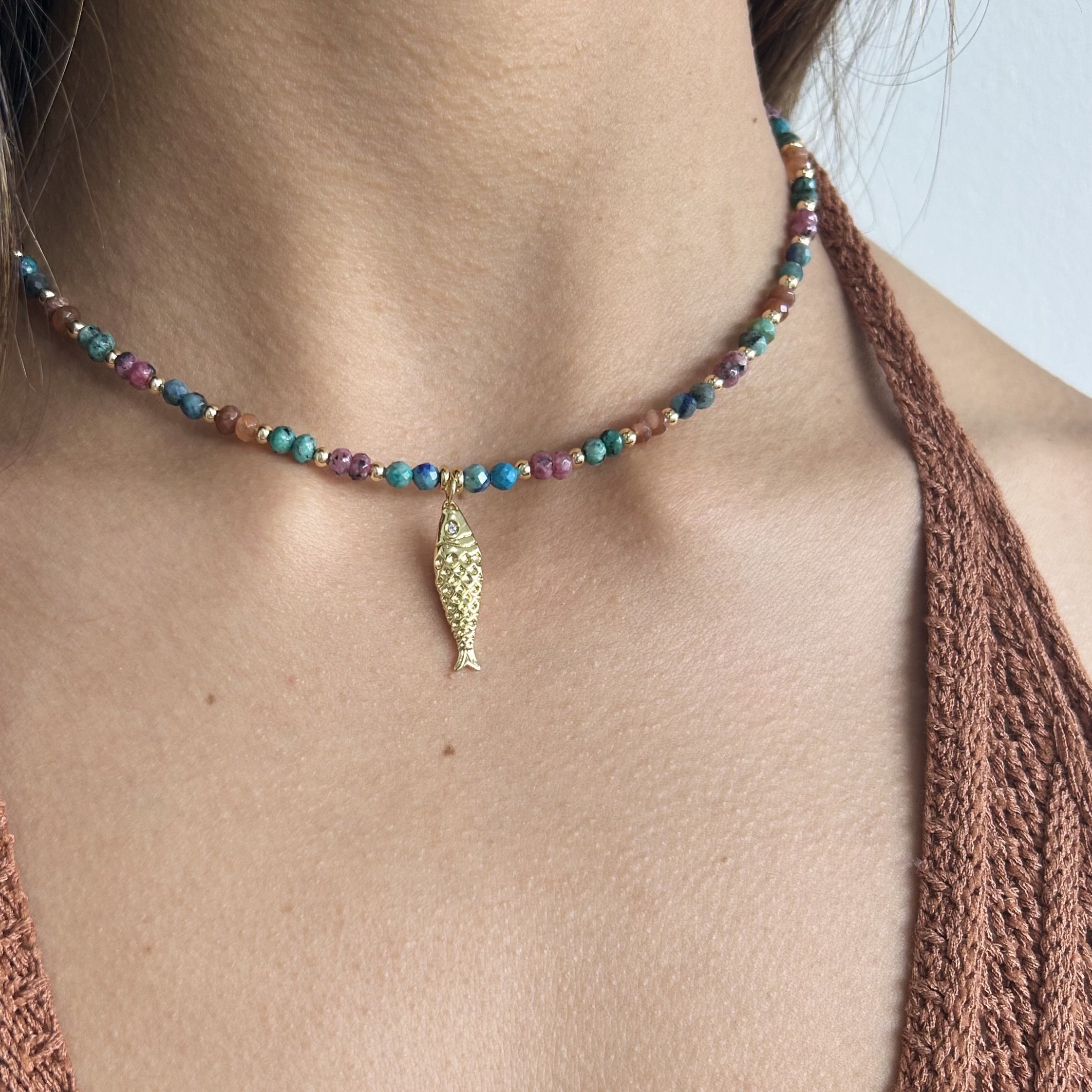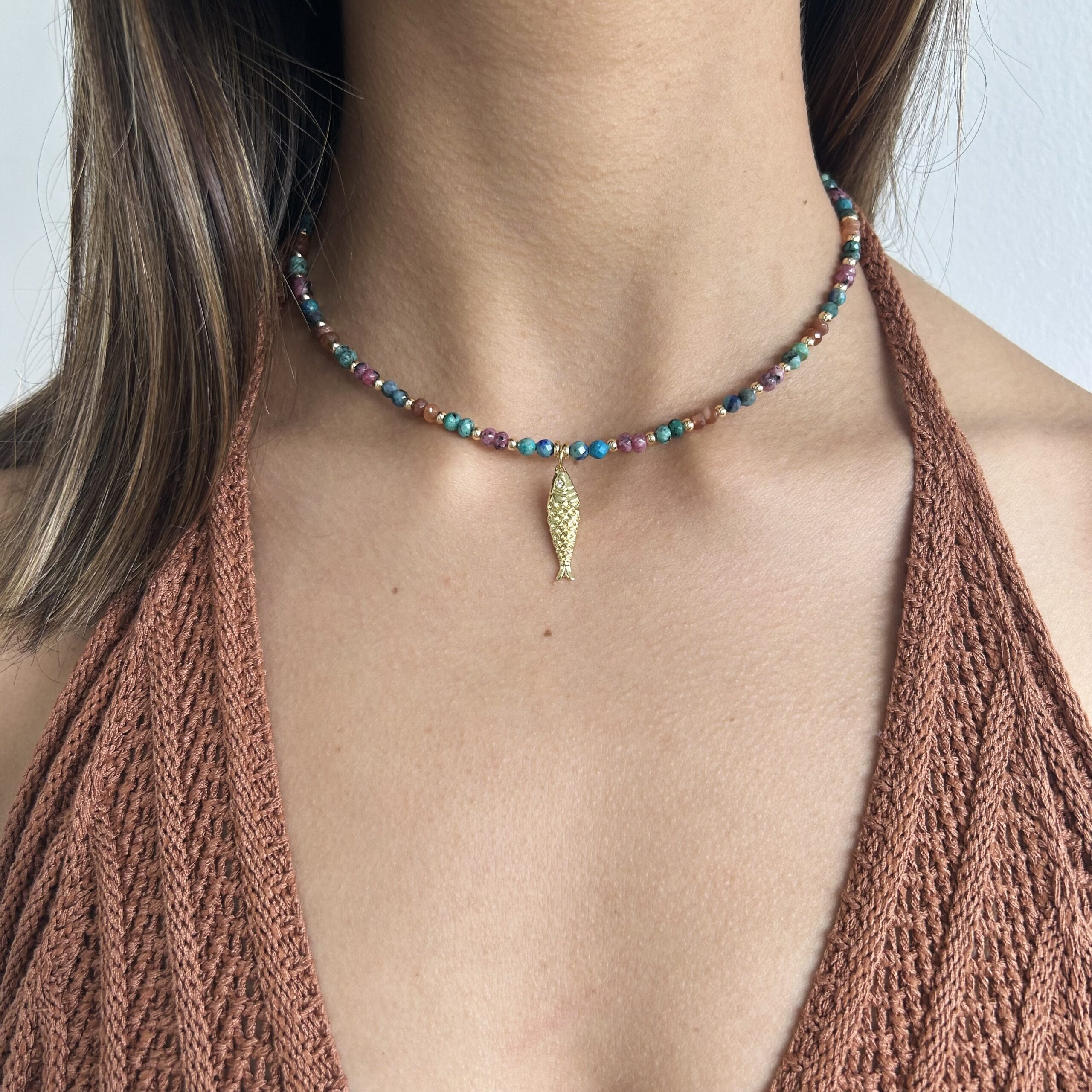 Colgante con piedra natural jade de malasia color ciruela y color arena combinado con crisocola.