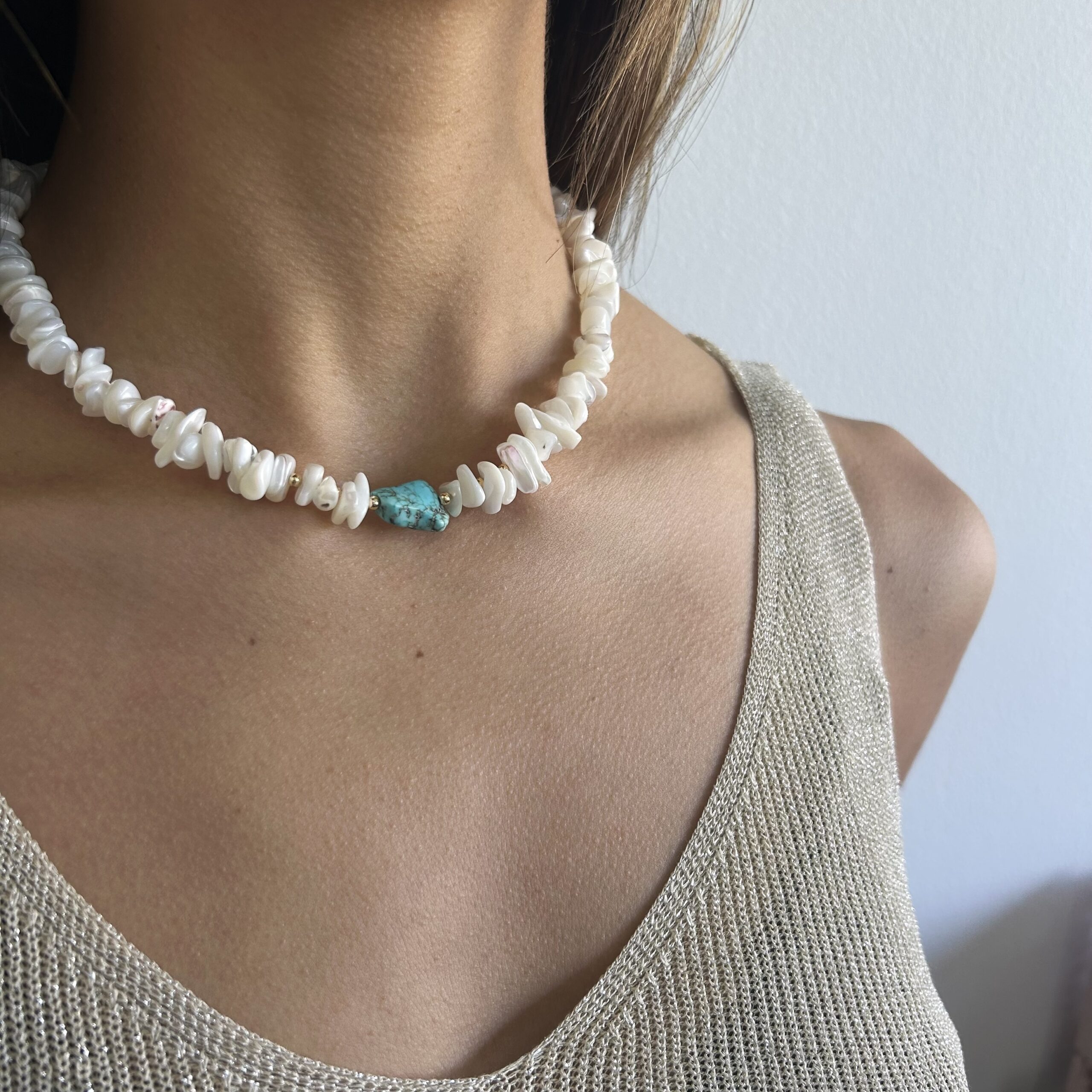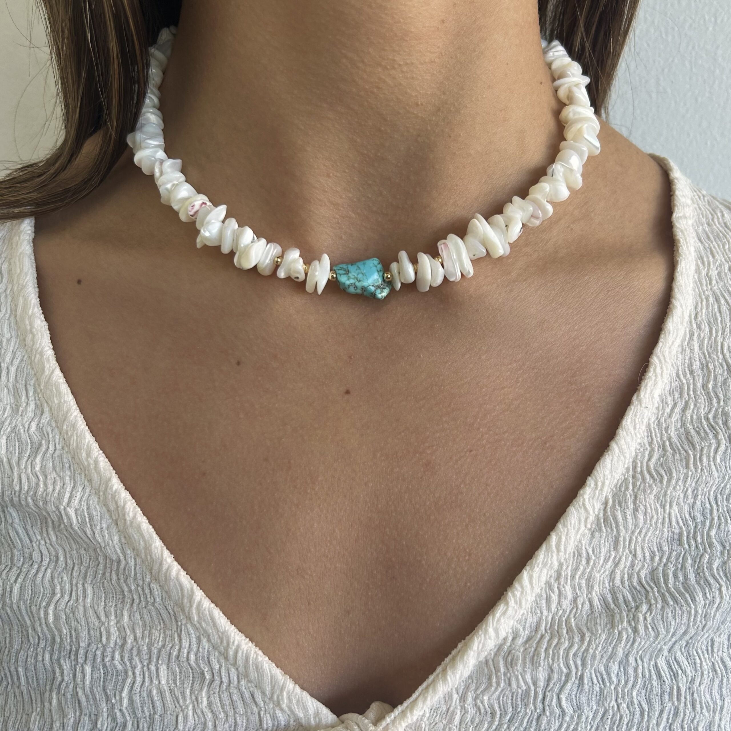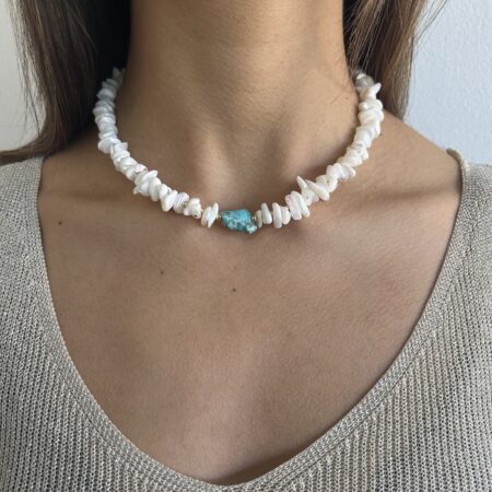 Colgante con piedras nácar natural y piedra magnesita (central).