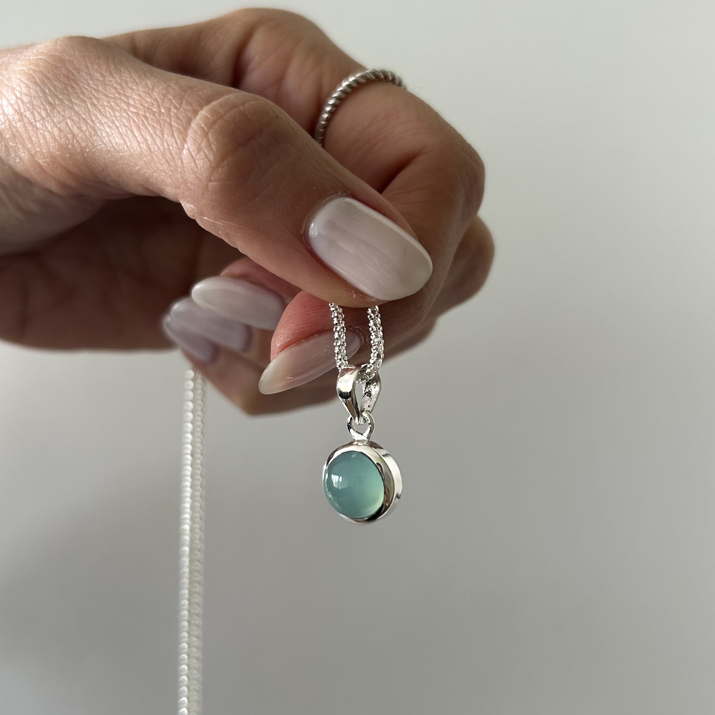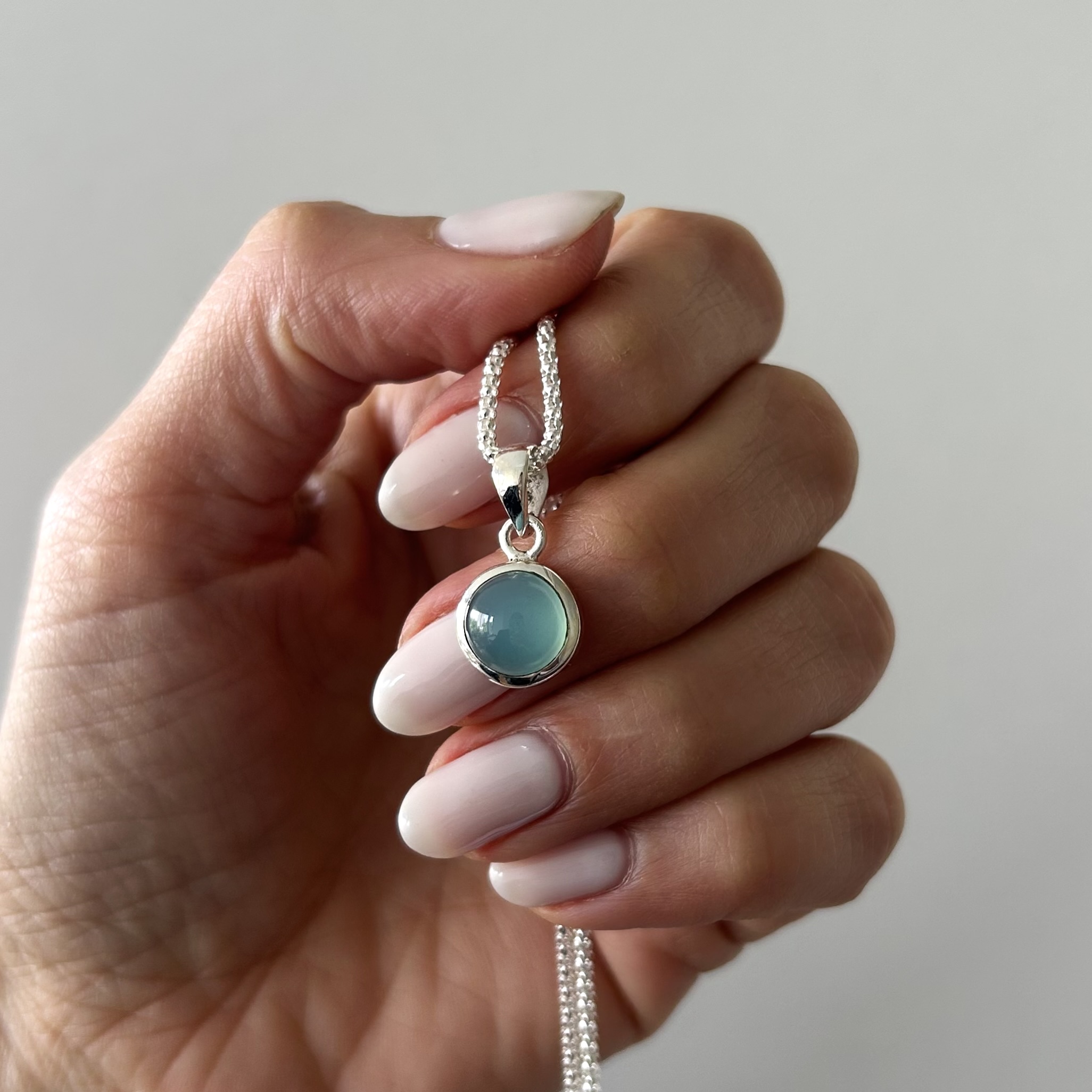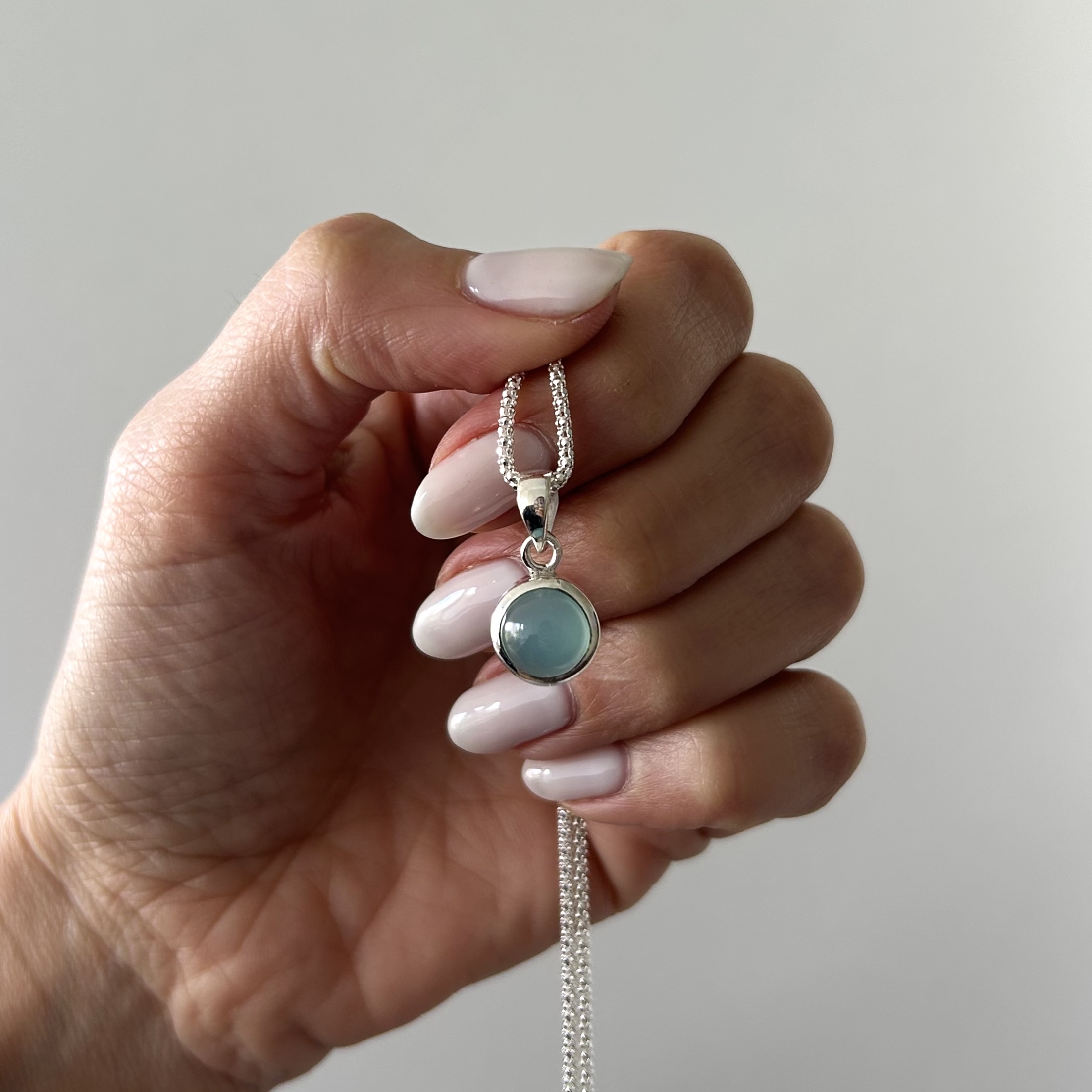 Conjunto con piedra natural calcedonia y cadena coreana.