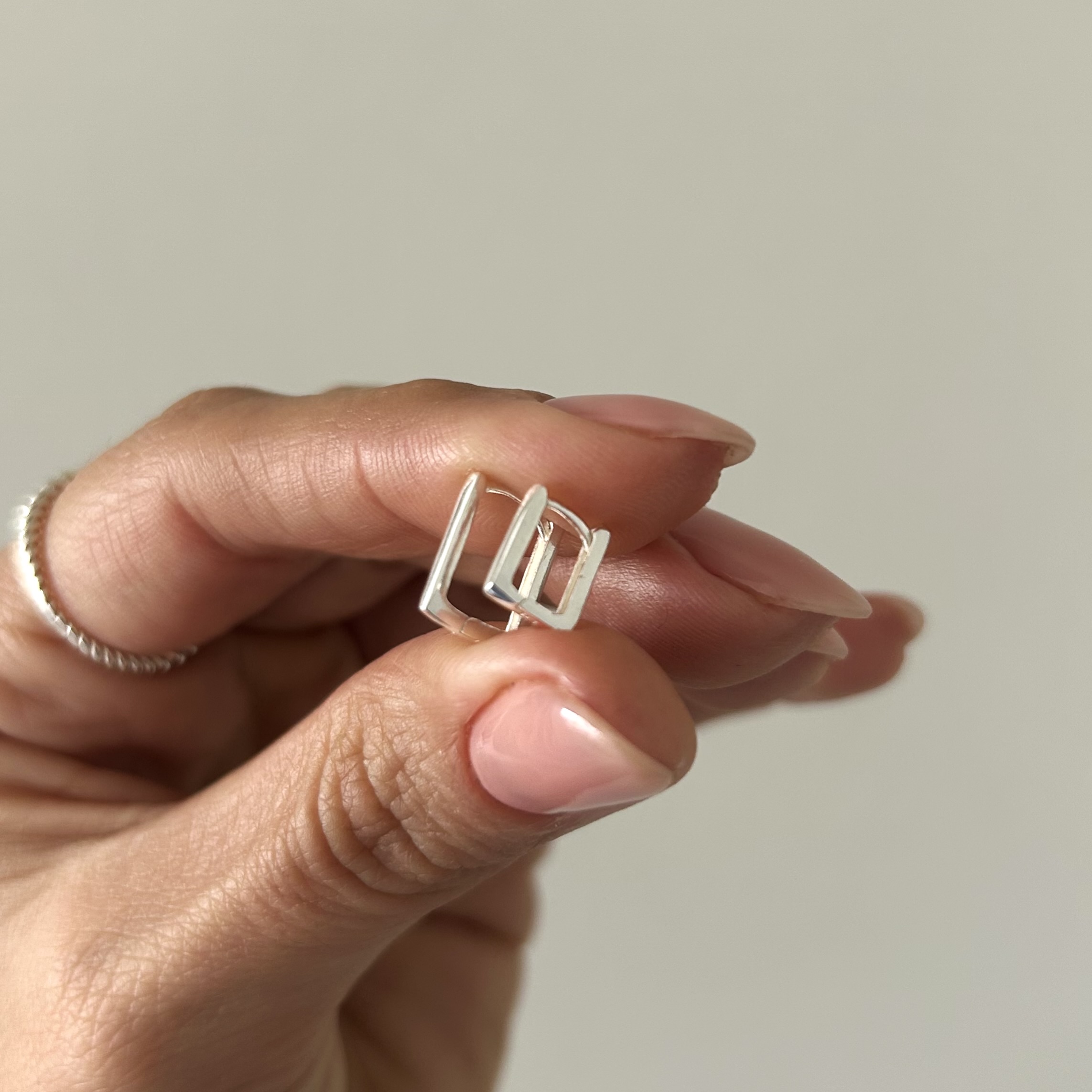 Mini aritos rectangulares, cierre huggie, disponibles en dos tamaños