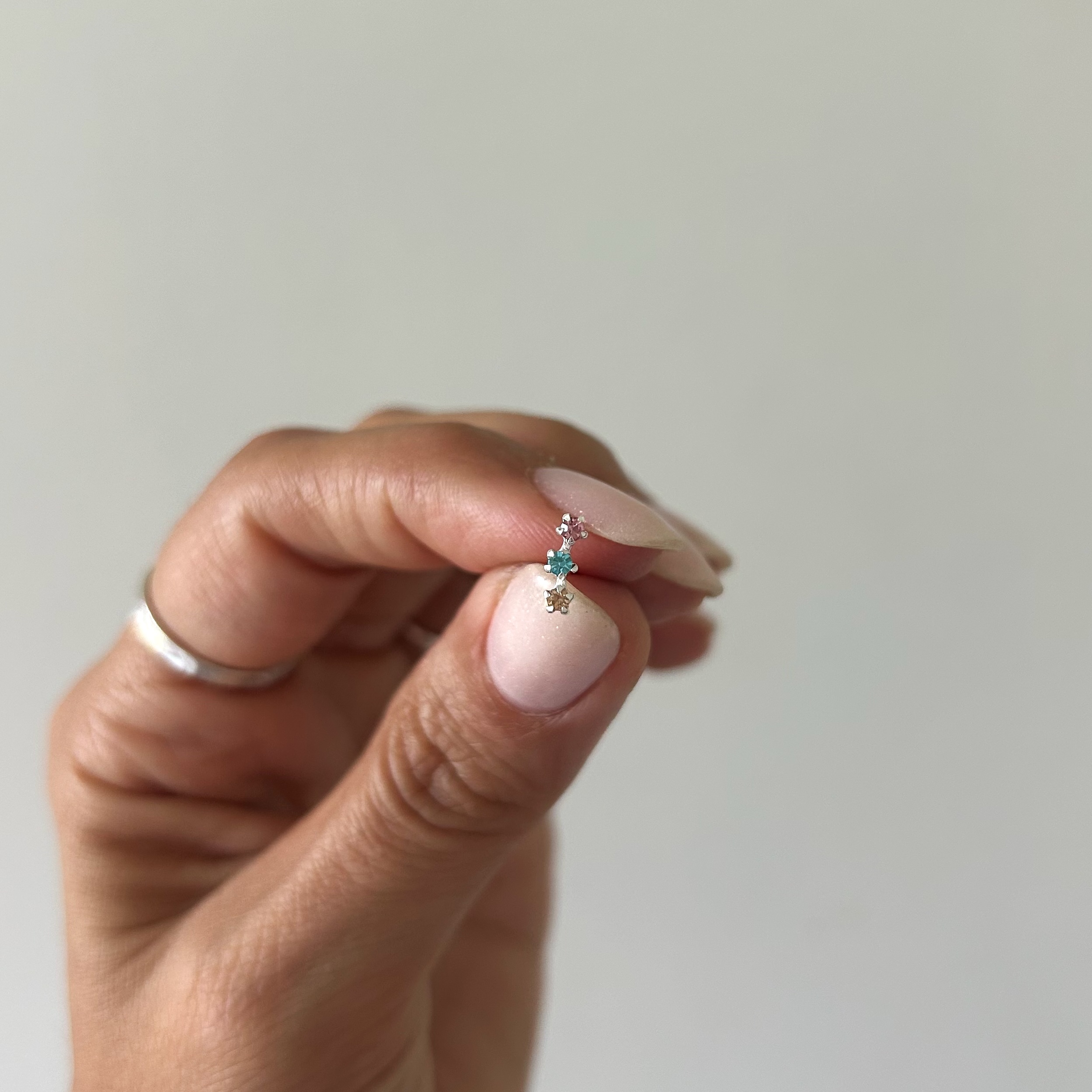 Mini con tres circonias en colores pasteles.