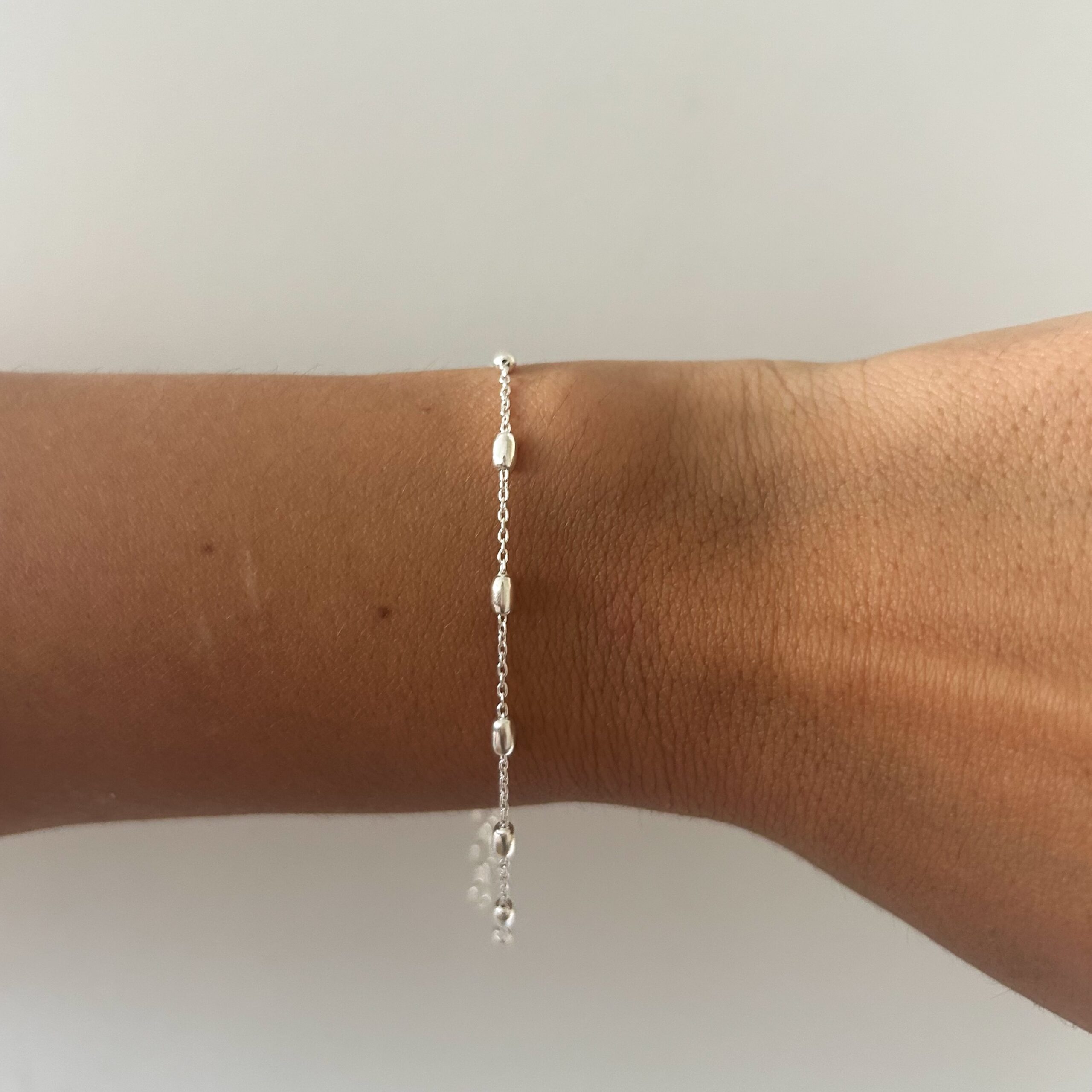 Pulsera con bolitas ovaladas.