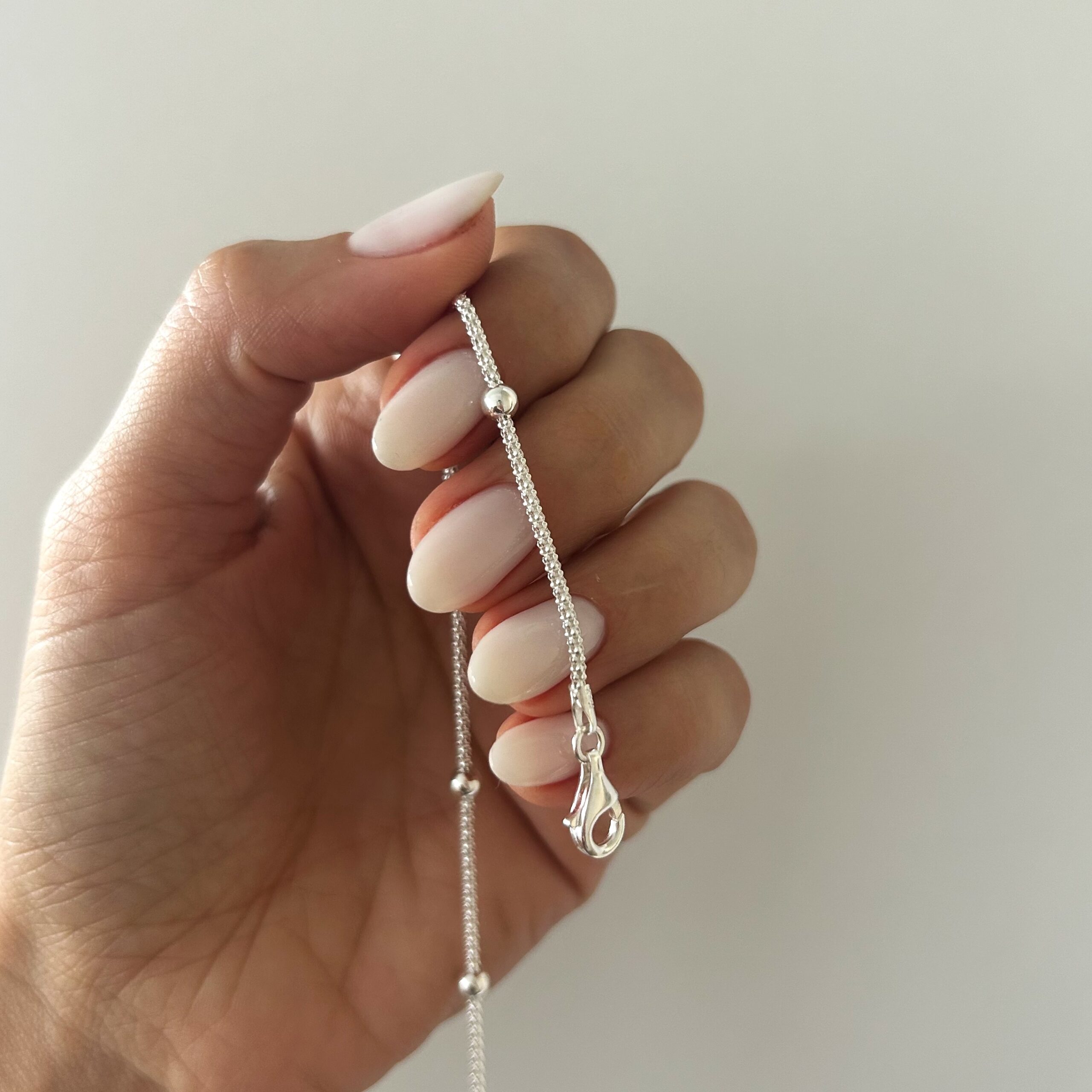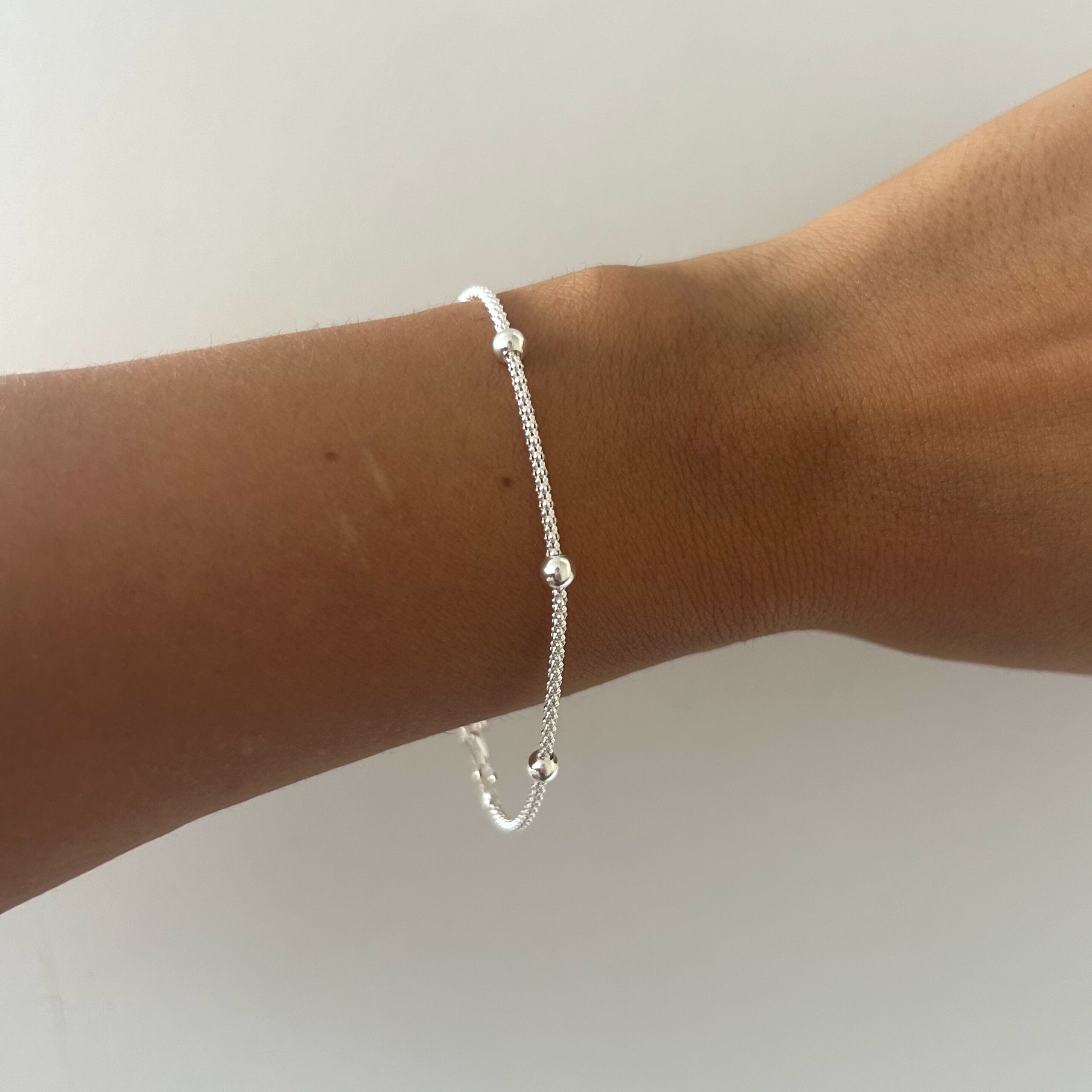 Pulsera coreana con bolitas, largo total 18.7 cm