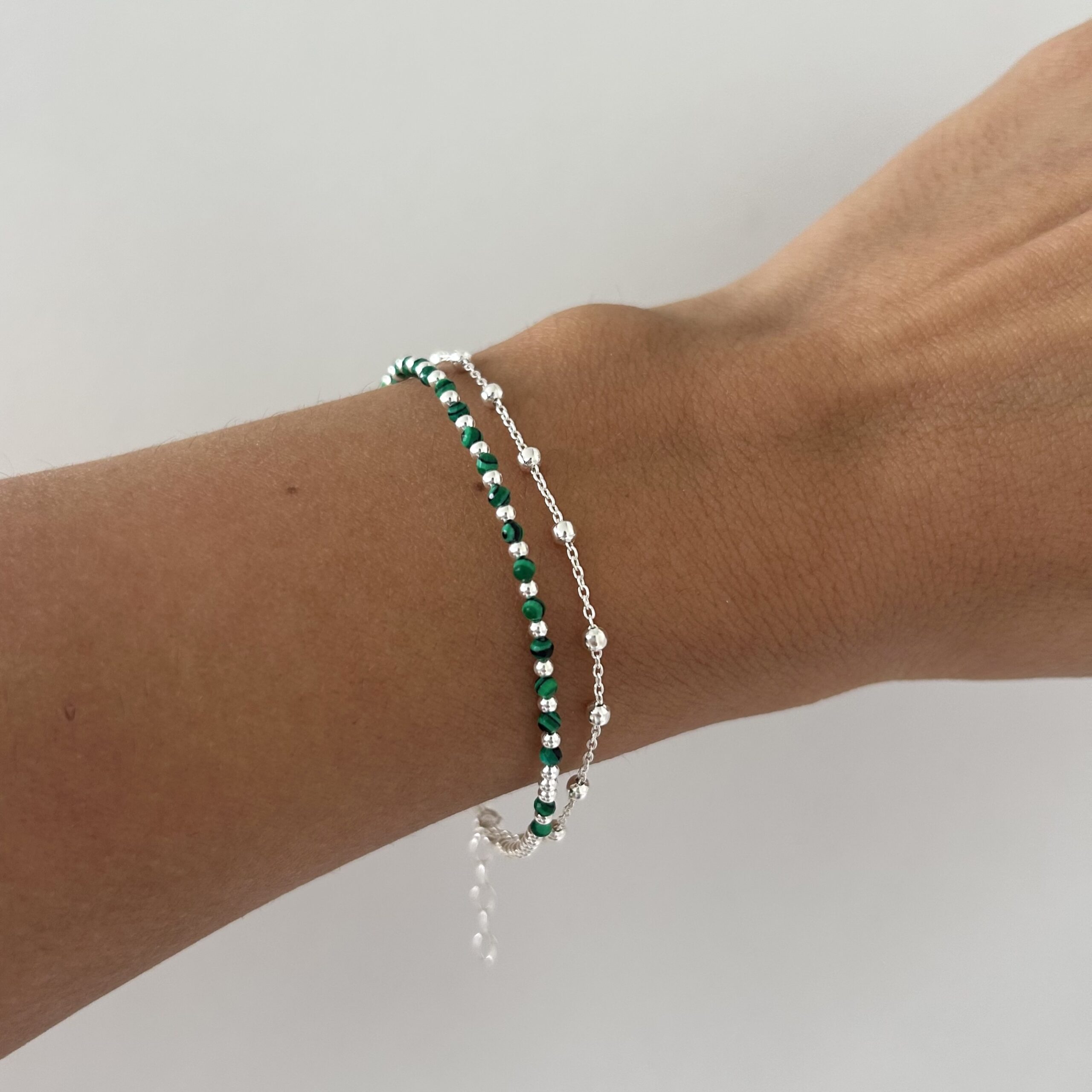 Pulsera doble (piedras naturales + bolitas, vienen unidas)