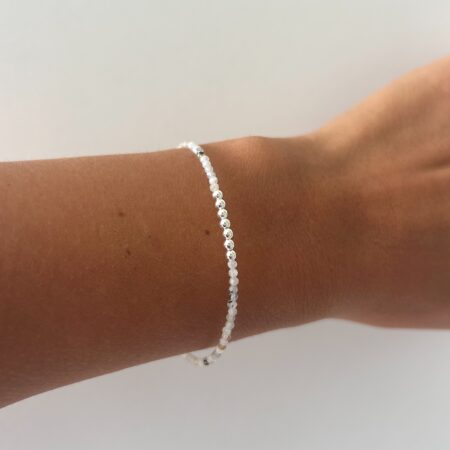 Pulsera con piedra labradorita natural y bolitas de plata.