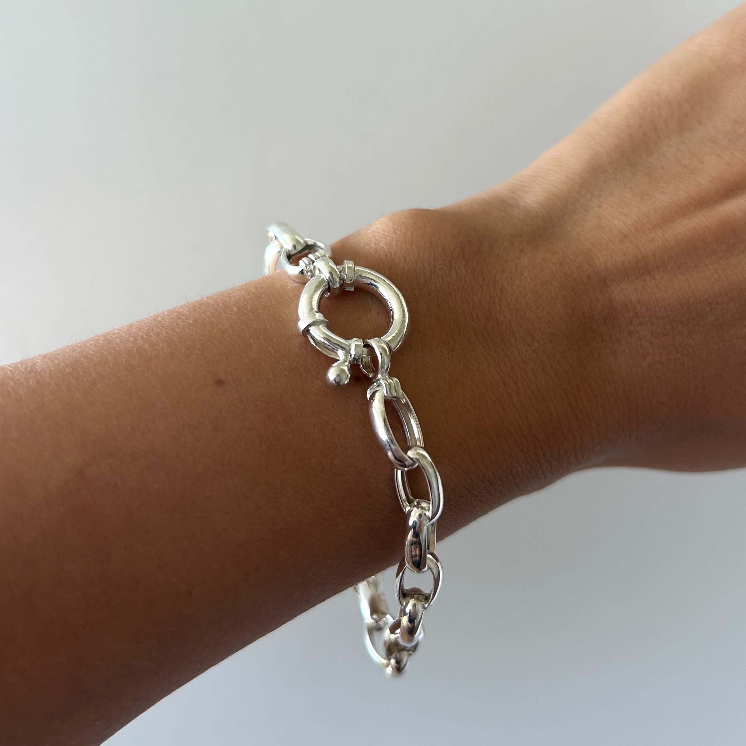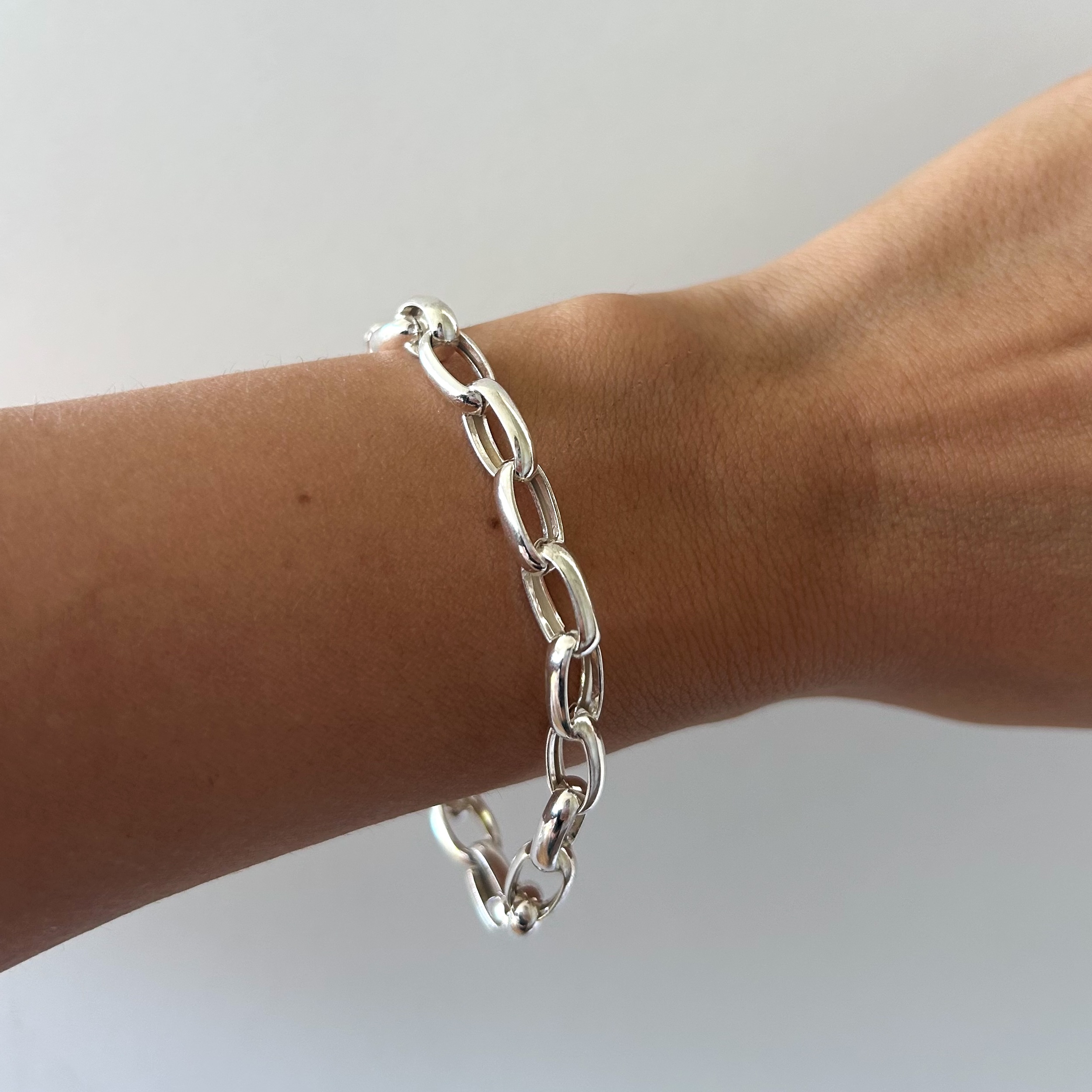 Pulsera con eslabones ovalados gruesos y cierre marinero.
